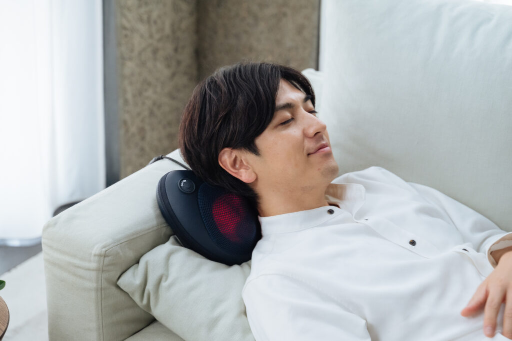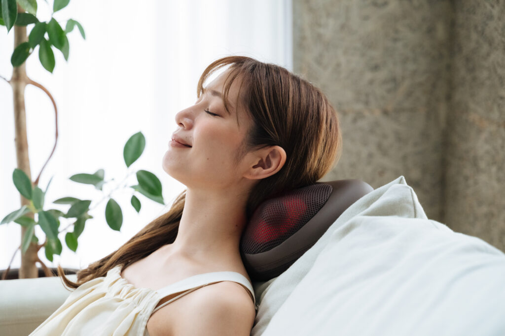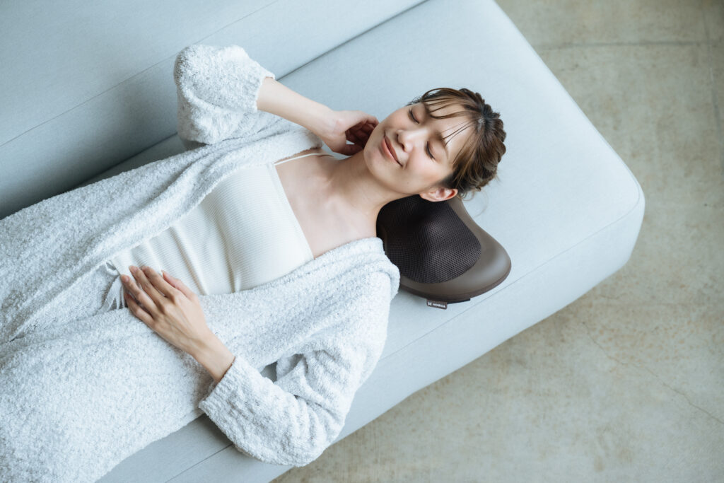 内蔵温熱ヒーターがじんわりと温めながら、こわばった筋肉にアプローチ。温かさの中でほぐれていく心地よさをお届けします。